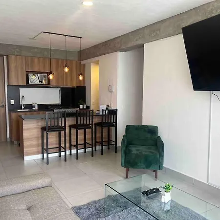 瓜达拉哈拉Departamento Centrico公寓设有大厨房和配阳台,梳妆区 和沙发的客房. 公寓距离武器广场有2.4公里.它距离莫雷洛斯公园有2.8公里.